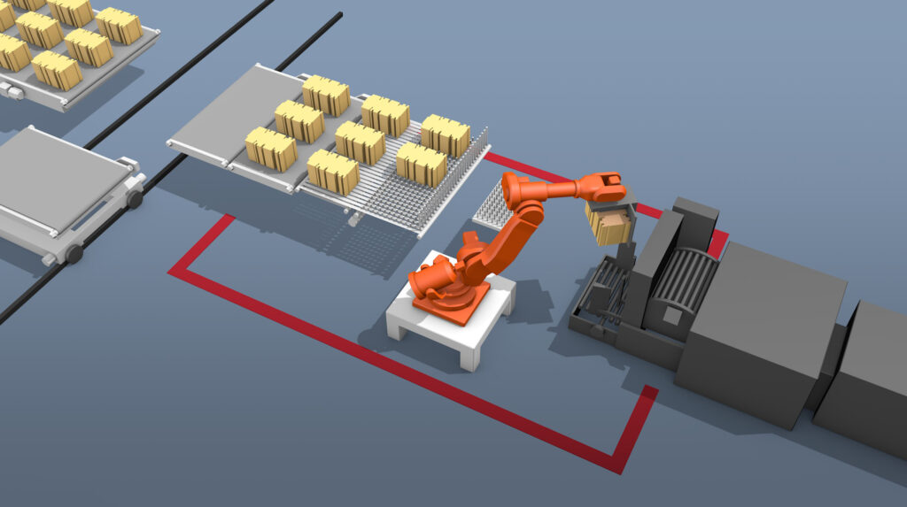 Simplify your heavy stack handling with the i-Feeder whilst eliminating the need for manual labor. Our innovative i-Feeder automates the process, feeding your folder gluers directly from stack conveyors into your pre-feeder. The i-Feeder uses a conveyor to move stacks to a pick point, where a robot picks up a stack, squares it, and places it directly into the folder gluer hopper.