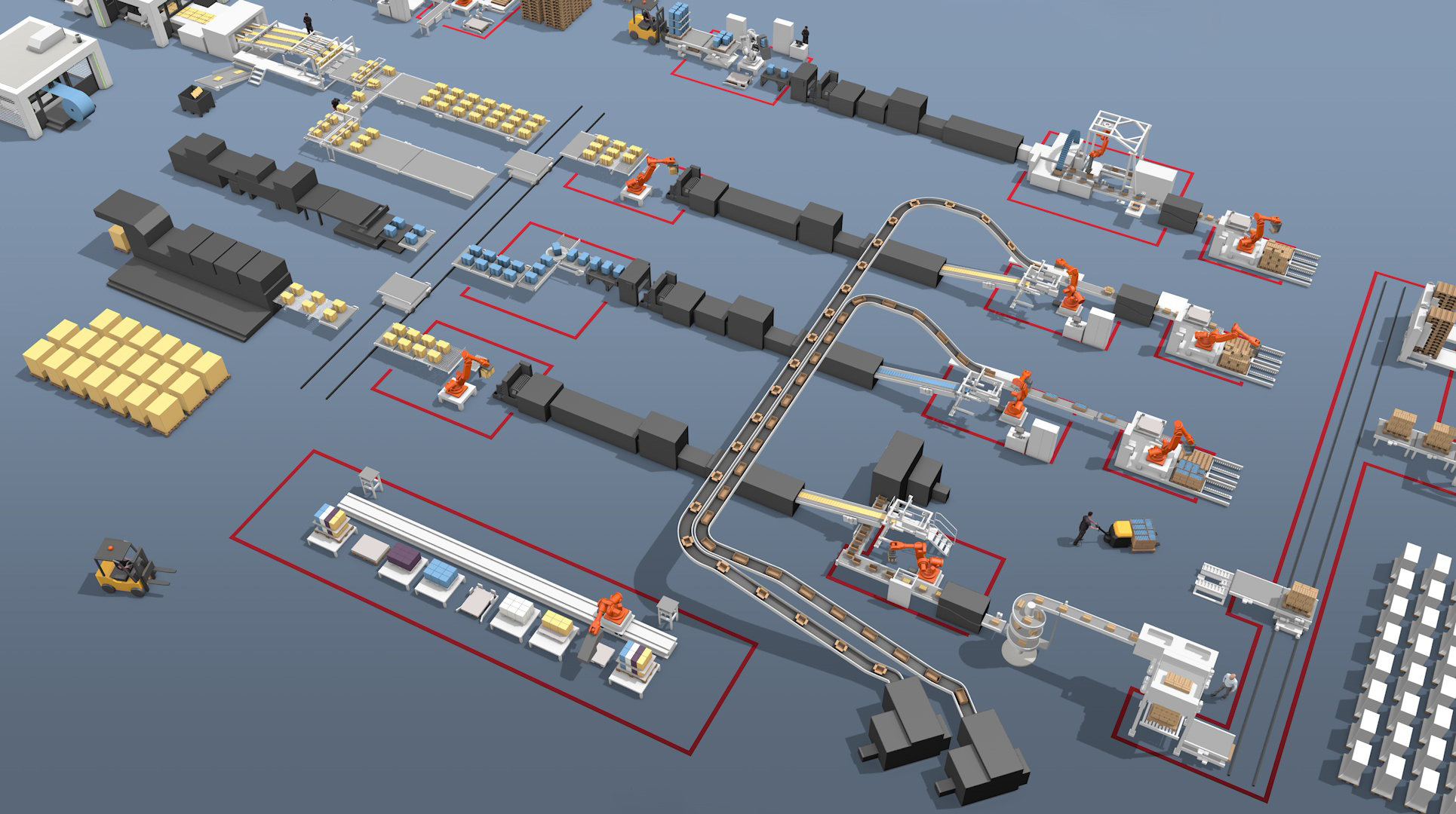Robot and conventional palletizers for palletizing your cases.